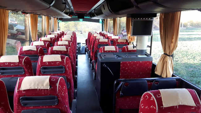 - DVD s USB, 2x LCD monitor, rádio, mikrofon, 2 x lednice, kávovar, WC